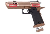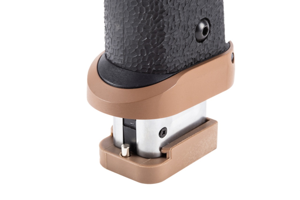 BATON airsoft BT-SAND VIPER CO2GBBは、このTTI SAND VIPERの魅力をCO2ガスガンとして忠実に再現。実銃同様ドットサイトを搭載出来るスライド上部は、金属製のプレートをインサート成型することで強度を確保。また、ドットサイトが無くてもねらい撃てるように、オリジナルのリアサイト付きスライドカバーと、集光フロントサイトが付属する。季節を問わない俊敏なブローバックは、CO2GBBならではの迫力のあるリコイルを生み出し、弾道の安定性の高さも相まって、撃つことの楽しさを存分に体験させてくれる。
